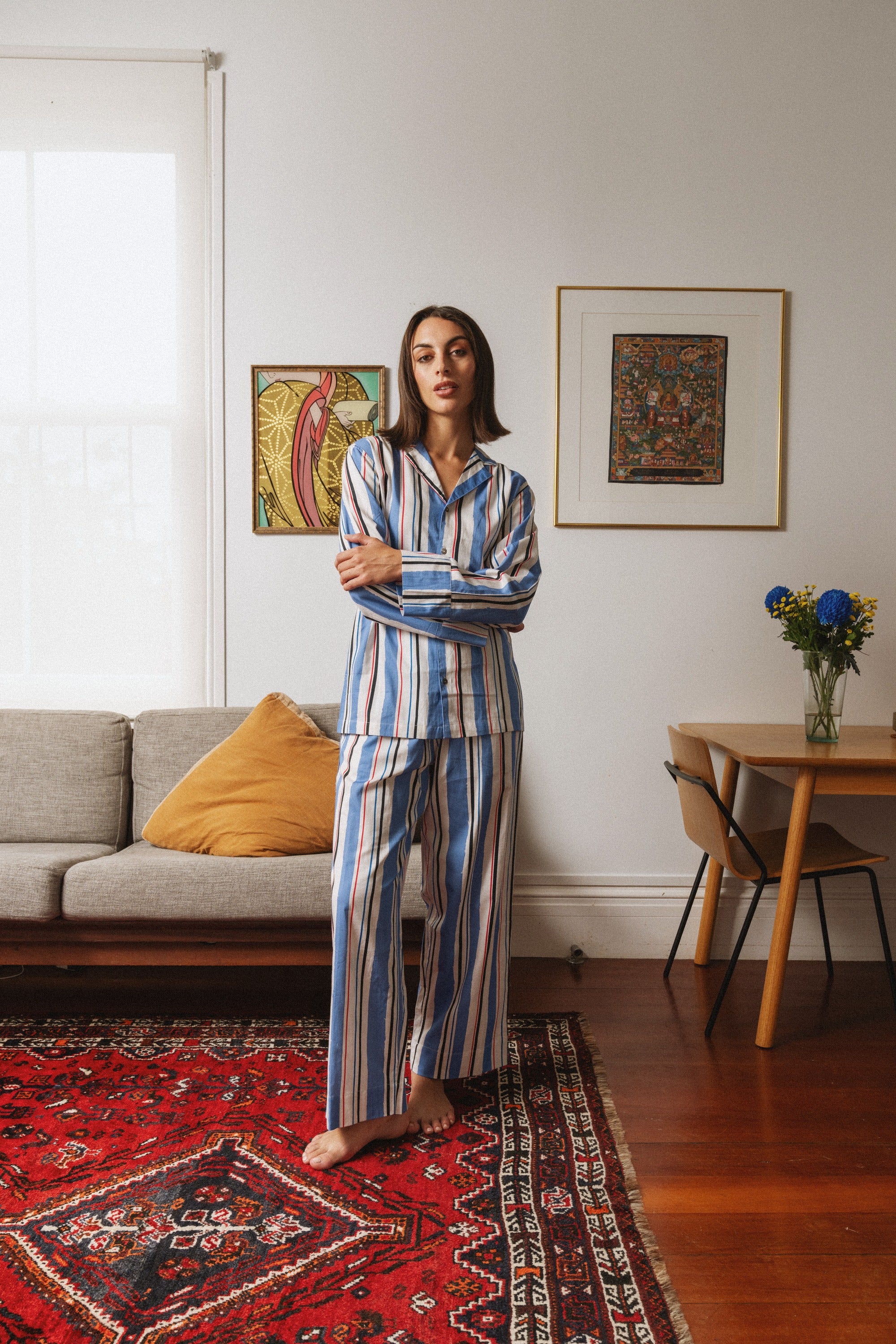 Introducing our exclusive striped pajama sets, where comfort meets style! Available in both short and long sleeves, as well as trouser and short options, these limited-edition pieces are perfect for lounging at home or enjoying cozy nights in with friends.