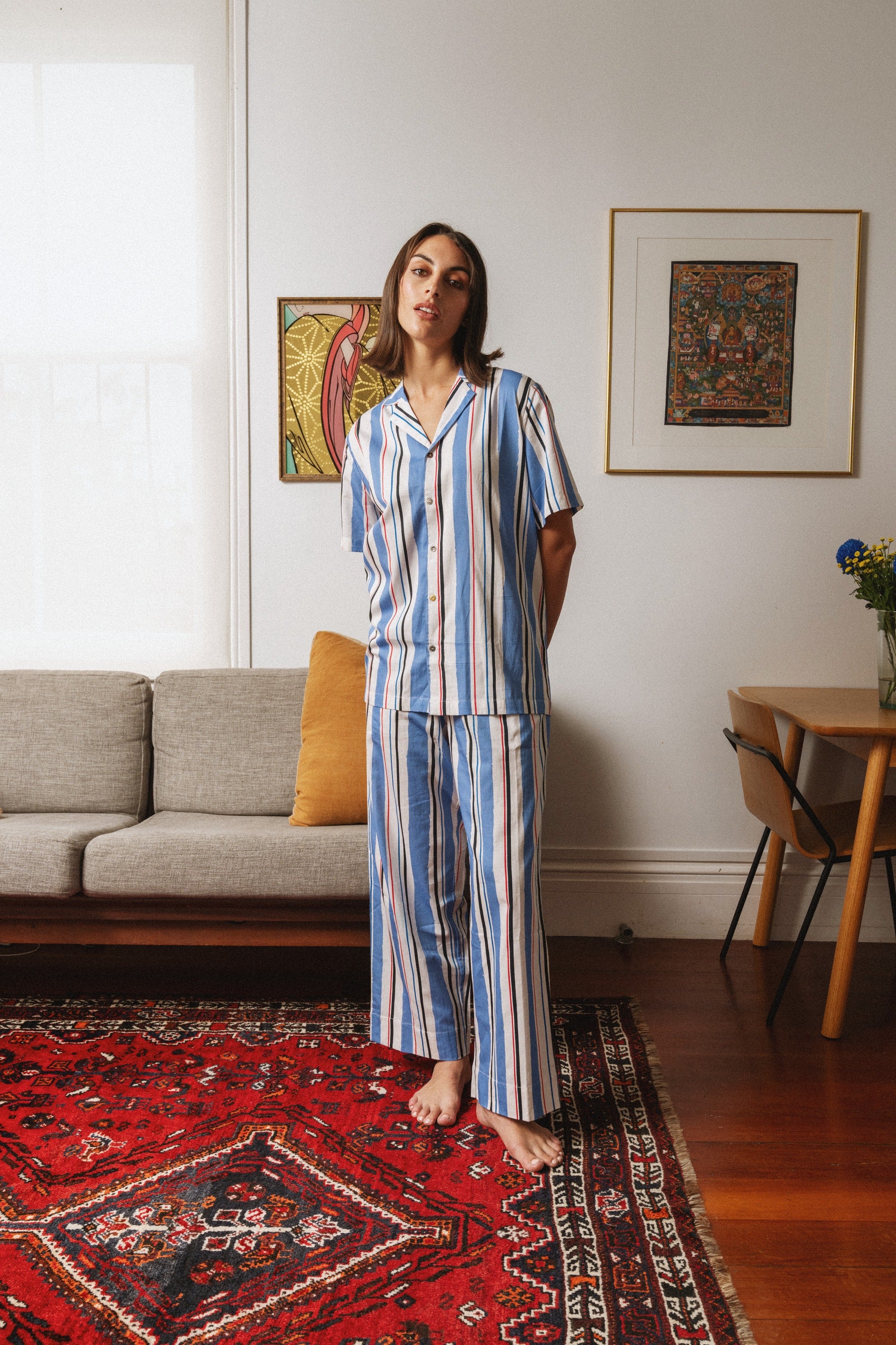 Introducing our exclusive striped pajama sets, where comfort meets style! Available in both short and long sleeves, as well as trouser and short options, these limited-edition pieces are perfect for lounging at home or enjoying cozy nights in with friends.