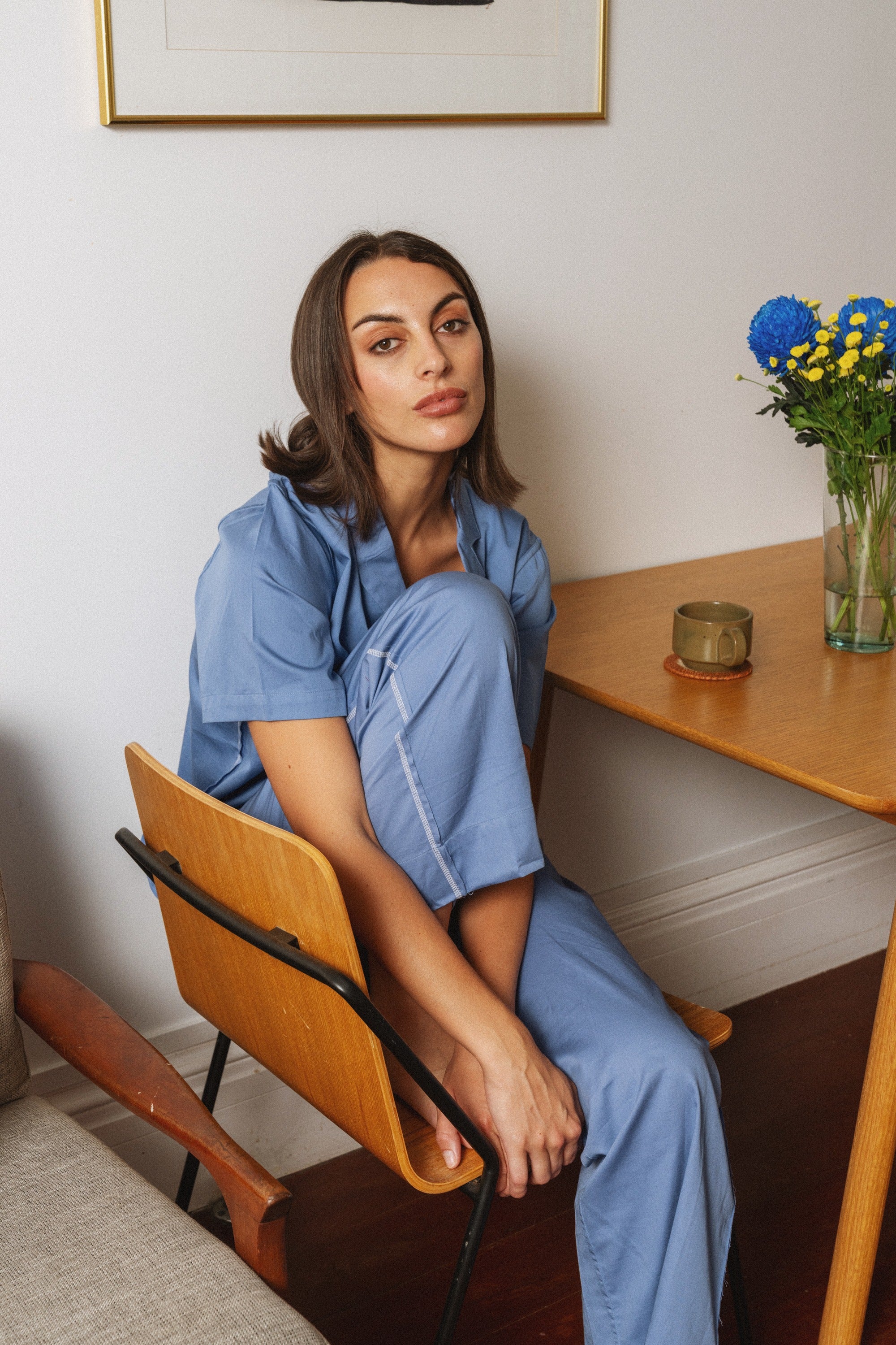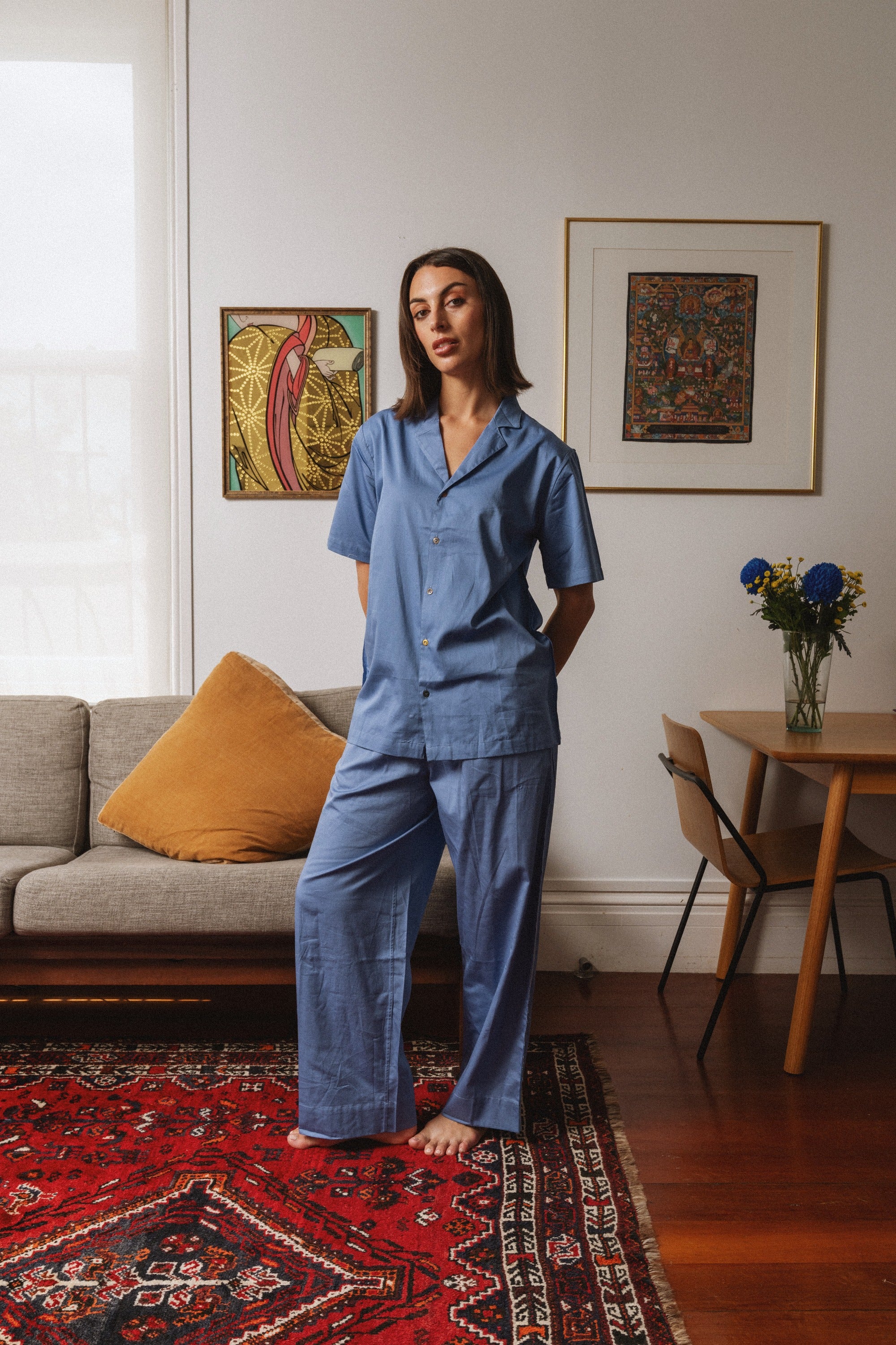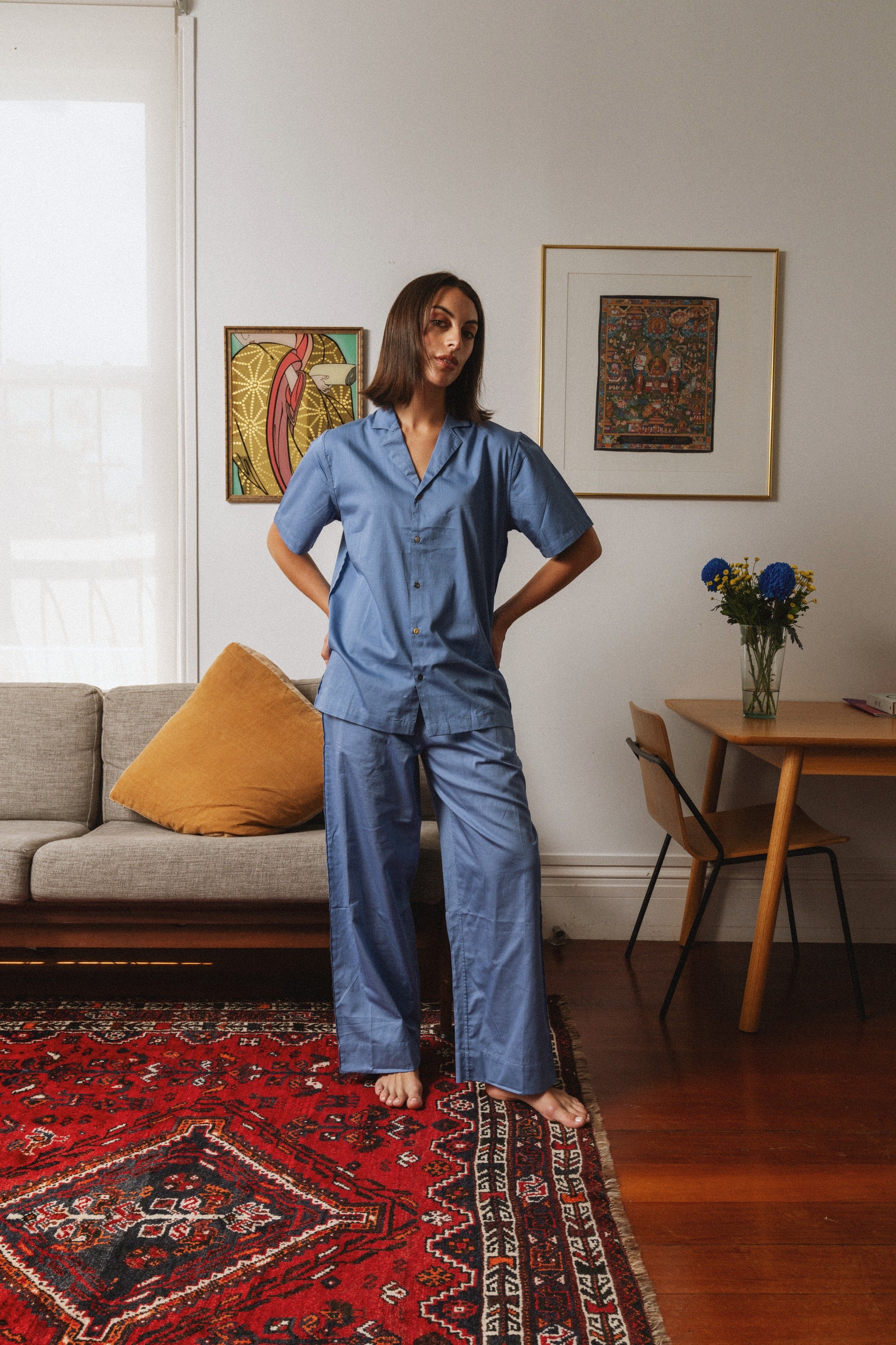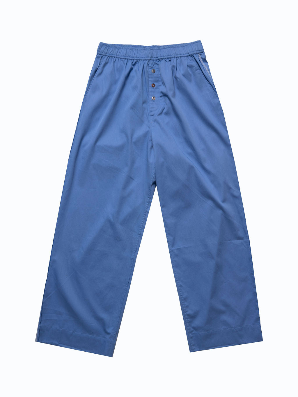 Designed for effortless style and comfort, these unisex pants feature an elasticated waist, a long straight-leg silhouette, and a working button fly. Raw side seams with contrast coverstitch detailing add a unique, modern edge, while front slash pockets provide functionality. Made lovingly in India, these pants are crafted to fit seamlessly into any wardrobe.