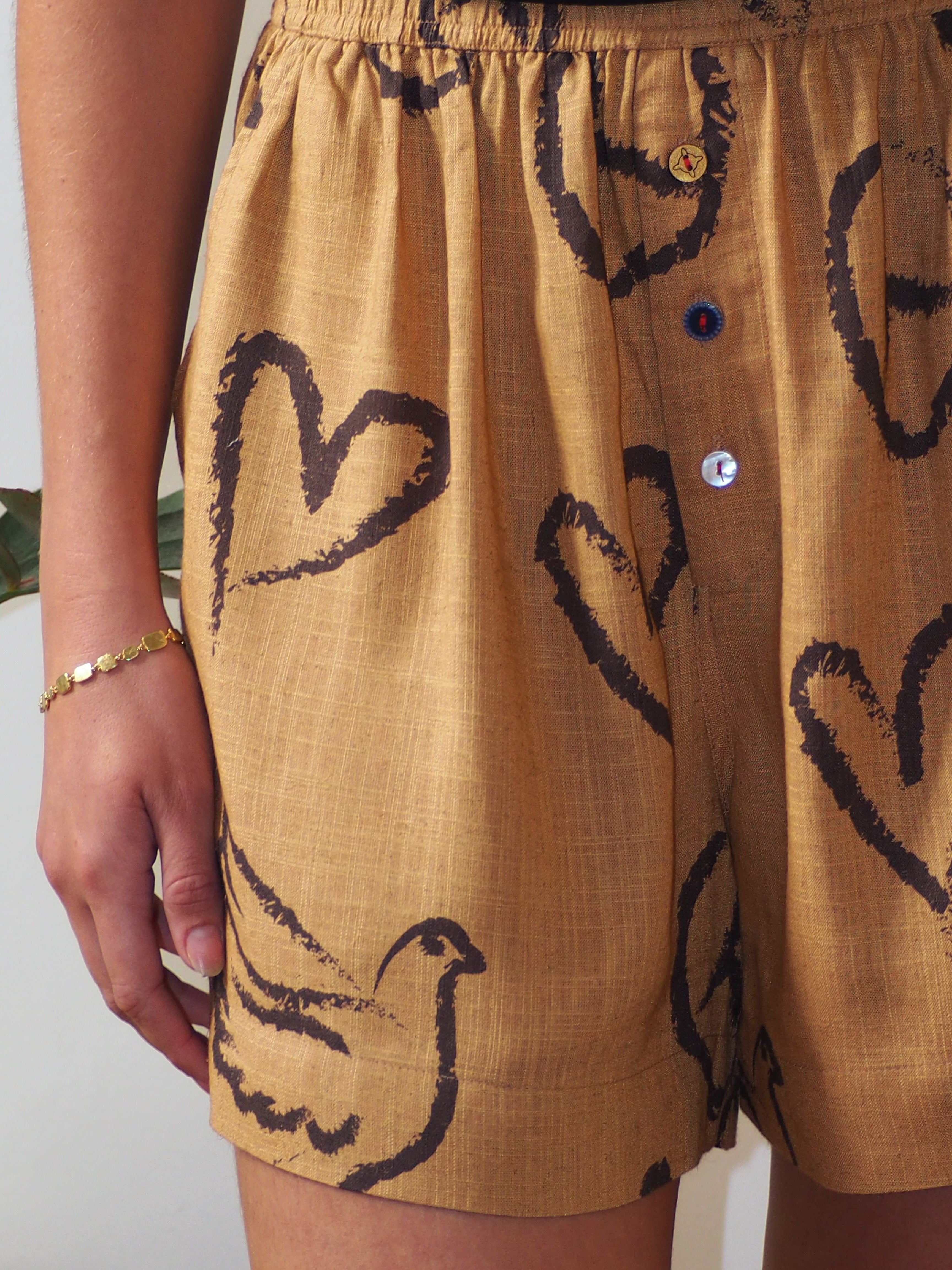 Elevate your relaxation game with our limited-edition linen short, designed for those who cherish comfort and self-expression. Crafted from soft, breathable linen, this shirt is perfect for lounging at home or enjoying laid-back gatherings with friends. Adorned with vibrant peace and love symbols, it embodies a fun and eclectic spirit that resonates with free-spirited souls.